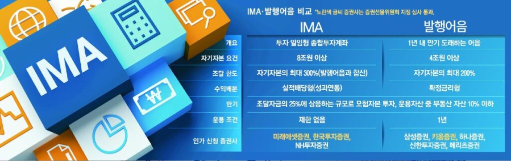IMA: 증권사가 망하지 않는 한 원금을 100% 보장합니다. 예금처럼 마음 편하게 굴릴 수 있습니다.